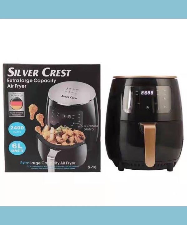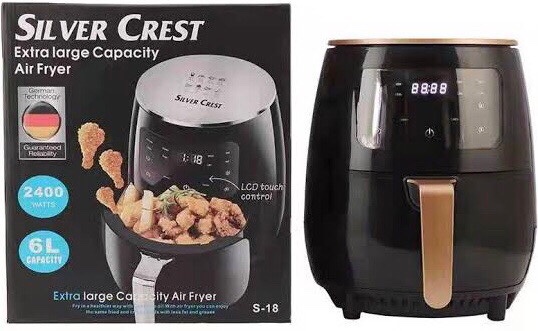 Silver crest extra large capacity air fryer with capacity of 6Liters and LCD touch controls. Silver crest extra large capacity