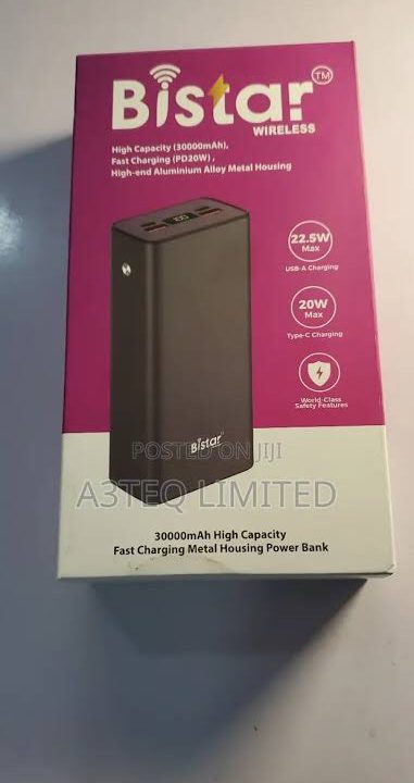 Bistar 30,000 MAH Powerbank⚡️ is made up of alloy metal case (unbreakable), type c input and output charge⚡️, Fast charge